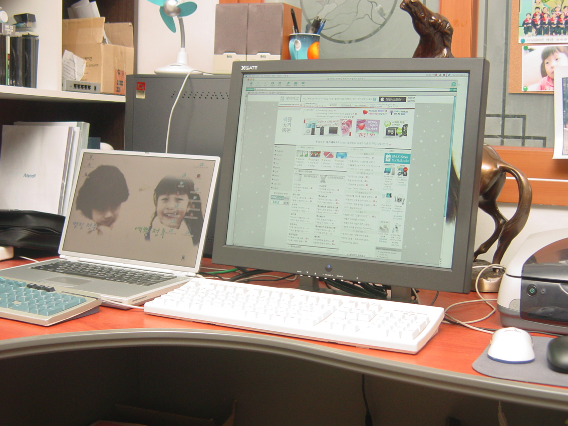 38만원 짜리 DVI + VGA 모니터 지름신의 강림으로... 질렀습니다. 큐브는 보내고 파워북으로 이동한 관계로... 20인치 엘시디 걱정했는데(너무 싸서) 애플디스플레이와 큰 차이 없네요. 너무 싸다는 ..... 두솔 엑스게이터20 ㅎ ㅎ ㅎ ㅎ