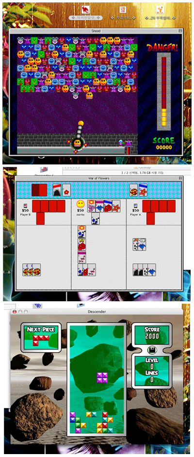 <img src=http://www.tomatonet.com/club/board/mac_study/upimg/1013765053.jpg> 맥용 mame겜도 무지 많은데... 요즘은 온라인겜한다고 안하지만... 예전에는 무지 즐겨했다는..ㅎㅎㅎ 일명 오락실 겜인데 한 600가지 종류를 가지고 있었거든요...^^