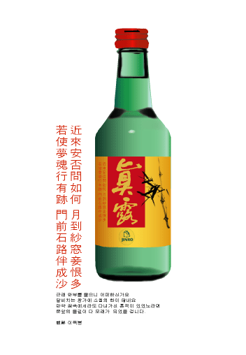 중국 바이주에 한국 소주병처럼 모양내서 많이 나옵니다. 중국 바이주 색상은 금색과 은색을 좋아하고 싸구려 술에 빨강색과 노랑색 씁니다. 이과두주나 뭐 그런거... 색상을 조금 바꾸시면 아주 좋습니다.